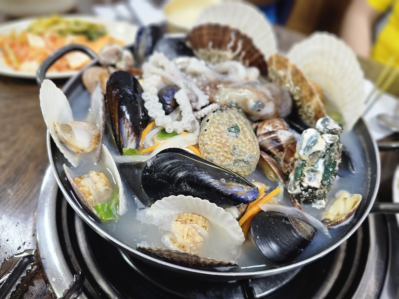 gna대부도 여행 갔다가 방문해본 16호원조할머니칼국수 대부도본점. 근처에 11호 31호 등등 몇호 몇호 엄청 많다. 16호를 선택한건 리뷰가 많았다는 점과 원조라길래... 16호 원조할머니칼국수 대부도본점 경기 안산시 단원구 대선로 10 08시30분 - 20시30분 / 매주 화 휴무 ☎️ 0507-1315-5590 ✔️ 단체예약 가능 원조16호 할머니...진짜 원조맞겠쥬 매장이 생각보다 엄~청 큰건 아님. 메뉴판. 우린 해물바다칼국수 3인 + 해물파전 시켜봄 해물이 통으로! 싱싱한 산낙지가 꼬물꼬물.. 모래시계 3분짜리 주시는데 3분지나면 면 들러붙지않게 휘저어 해물과 함께 먹으면 된다. 낙지는 샤브처럼 살짝 데친느낌으로만 먹는것을 추천. 각종 조개와 홍합 바지락 해산물이 진짜 엄청 가득하다.. 칼국수도 맛있었음.. 가리비 껍질에 초장 짜서 먹음 된다고 알려주심ㅋ 양이진짜많다 해물파전은 솔직히 좀 아쉽다. 갓 튀긴 느낌이 아니고 좀 식어서 나왔다. 그냥 반찬으로 나오는 파전느낌이랄까.. 칼국수는 맛있는편인데 엄~청 특별하게 진짜맛있다...여긴꼭와야한다.. 재방문각이다.. 이정도는 아니다 솔직히. 이만큼 하는곳은 많다고 생각듦.. 해물은 많고 싱싱하긴 했음... 다음엔 다른델 가보는걸로!