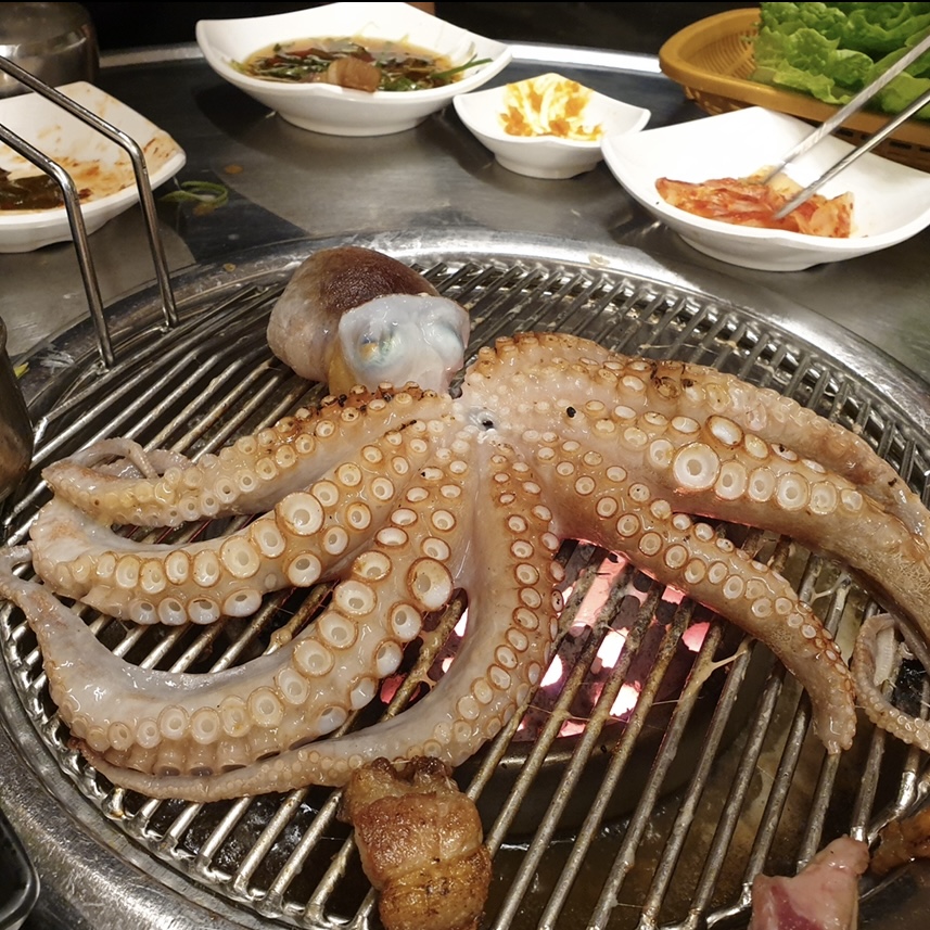 con****혼자 여행하면서 양이 많을까 걱정했는데, 역시나 양이 많았습니다 (세트A 고기+전복+새우) 그런데...다먹었..양이 적은게 아니라 맛있어서 다 먹게 되더라구요!! 외관/내부 분위기 다 좋고 앞에서 강아지가 '오서오개' 하고 반겨주는 듯한 느낌 ㅎㅎ 고기는 일반적인 부드러운 고기는 아니에요, 제주흑돼지의 쫀득한 고기고, 특제 젓갈에 찍어 먹으면 어휴..어휴..저렇게 다 먹게 됩니다. 조금 외진데 있지만 일부러 찾아가봐 좋을곳입니다