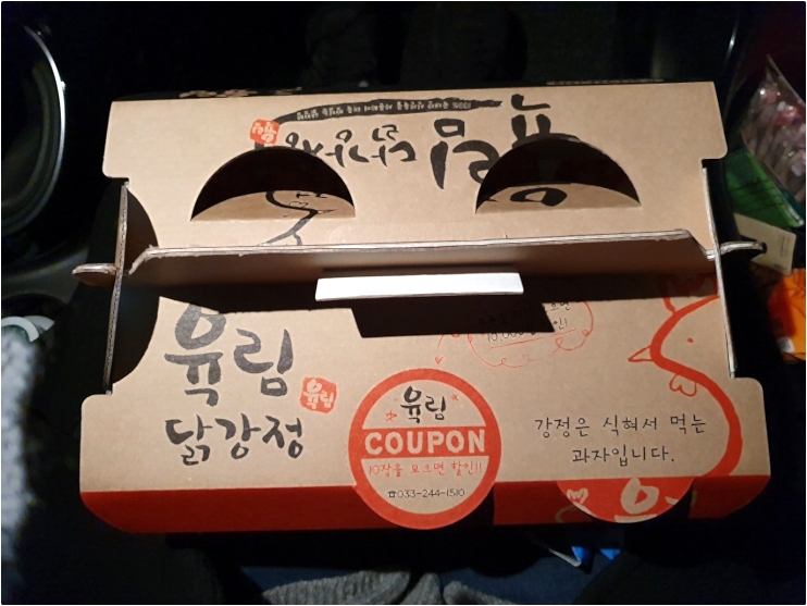 먼지니강원도 춘천 1박2일 여행을 하며 숙소나 집으로 돌아가는 길 차안에서 먹을 간단한 간식이 있으면 좋겠다고 생각했는데 마침 강원도 춘천 현지인맛집으로 조청닭강정을 파는 곳이 있어 다녀왔다! #춘천맛집 #춘천먹거리 #춘천간식추천 육림닭강정 육림닭강정 033-244-1510 ⏰ 매일 11:30-20:15 주차 불가능 춘천맛집 육림닭강정은 바삭함이 살아있는 춘천 대표 닭강정맛집이다. 나는 주말 오후에 방문했는데 포장을 기다리는 사람들이 꽤 있었고, 내 뒤로도 닭강정을 사러 오는 사람들이 많았다. (웨이팅이 길거나 많이 기다리진 않는다!) 제일 대표 메뉴인 조청닭강정을 사러 왔는데, 닭강정 말고도 호두강정이나 껍데기강정도 있어 춘천 기념품 선물용으로 맛별로 구입해 가기도 좋아 보였다 ㅎㅎ 육림닭강정은 테이크아웃 전문이라, 가게 안에서는 먹을 수 없었는데 춘천 포장먹거리로 구매해 숙소에서 먹기 딱 좋았다! 게다가 닭강정은 오히려 식었을 때 더 맛있는 간식이라고 하니~ㅎㅎ 나는 매운 걸 좋아해서 춘천 포장간식 육림닭강정도 매운맛으로 주문했는데, 다른 유명 닭강정들보다 조금 더 매콤하게 느껴졌다. 아주 많이 매운 건 아니고 적당한 자극적인 매콤함?! 나에게는 입맛에 딱 맞았다 ㅎㅎㅎ 일반 사람들은 그냥 보통맛으로도 괜찮을 것 같다! 한 상자가 양이 꽤 많았는데 숙소에서 술 한잔 하며 집어먹다 보니 맛있어서 금방 다 먹게 됐다 ㅋㅋㅋ 춘천 포장먹거리로 육림닭강정 추천해본다!