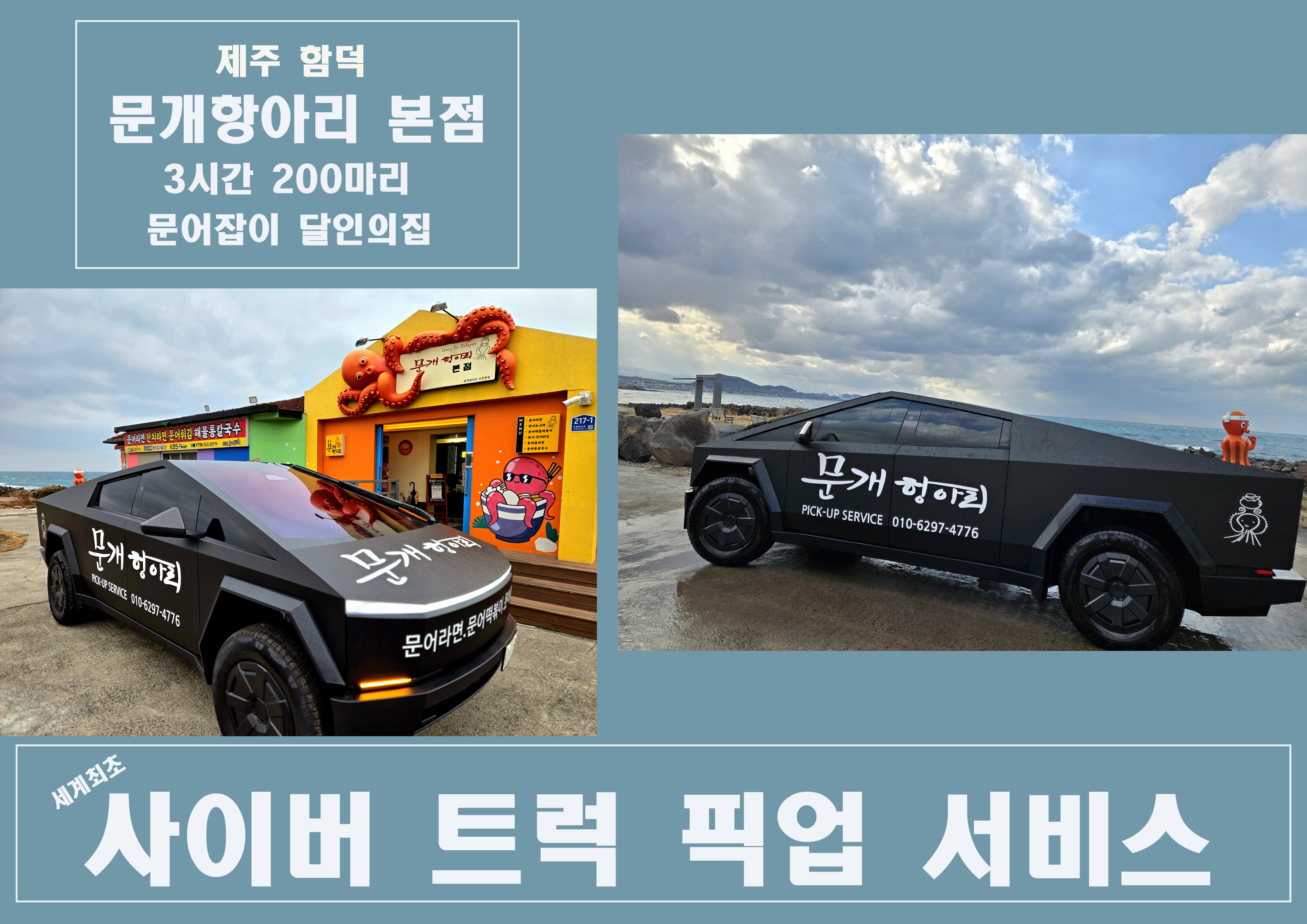 영든해이 글은 업체의 지원을 받아 작성한 글 입니다. 오랜만에 지인들이랑 여행가서 먹었던 식사 자리였습니다. 평소 이색적인 메뉴 조합을 좋아하는 지인이 써치하다가 눈에 들어온 곳이었어요. 함덕 바닷가 근처에 자리 잡은 제주 함덕 맛집이고 사이버트럭으로 픽업까지 와서 기대하고 예약했어요. 함덕 문개항아리 조천본점 주소: 제주 제주시 조천읍 조함해안로 217-1 1층 전화번호: 0507-1389-4775 운영시간: 09:30 ~ 19:00 / 라스트오더 18:00 주문메뉴 : 통칼국수 문어떡볶이 반반 모듬튀김, 문어볶음도시락 알록달록한 건물이 멀리서도 눈에 띄여서 따로 오셔도 찾기가 쉽고 저희는 사이버트럭으로 픽업을 해주셔서 첫인상부터 '여기 뭐지?' 싶은 임팩트가 최고인 곳이었어요. 내부로 들어가니 전체적으로 너무 쾌적하더라고요. 창문 너머 바다가 바로 보여서 보고만 있어도 힐링이 되고 테이블끼리 간격도 넓어 식사내내 여유있게 식사가 가능했어요. 주문하고 자리에 앉아 조금 기다리고 있으니 순식간에 테이블 한상이 가득 채워졌어요. 특히 해산물 상태가 너무 좋아서 보기만 해도 좋은 재료를 쓴 다는 것을 알 수 있었어요. 색감의 조화부터 너무 만족스러운 제주 함덕 맛집이었답니다. 직접 사장님이 만드신 비법 육수를 넣어다 주십니다. 해산물 양도 굉장히 많고 재료들의 질이 특히 좋아 보여서 이 부분이 기분이 되게 좋더라고요. 비법 육수도 되게 칼칼하고 국물이 깊어서 바로 속이 풀리는 맛이었어요. 비주얼만 봐도 너무 먹음직스러워요. 특히 반반으로 즐길 수 있어서 너무 매력적이에요. 떡볶이는 확실히 매콤한 게 입맛 돋구기 딱이었어요. 칼국수에는 조개가 푸짐했는데요. 짭조름한 조개 맛은 먹을수록 감칠맛이 폭발했고, 이 맛이 육수에 더해지니까 국물이랑 함께 먹으면 진짜 너무 중독되서 숟가락을 멈출 수가 없어요. 우삼겹도 상태가 너무 좋았어요. 단순히 냉동 우삼겹을 쓰는 게 아니시더라고요. 모든 재료의 질이 좋은 제주 함덕 맛집은 사랑받는 이유가 확실했어요. 우삼겹은 살포시 넣었다가 빼면 되는데 보고만 있어도 감탄사가 나왔어요. 그냥 먹어도 담백하고 좋지만 소스에 찍어서 먹으면 감칠맛도 좋았고 살살 녹아요. 마지막 쯤에는 칼국수 면 넣으면 환상이에요. 이미 깊숙히 우려진 육수는 그냥 먹어도 맛있어서 여기 칼국수 면 넣으면 진짜 전문점 보다 훨씬 맛있어요. 칼국수 면도 탱글탱글하더라고요. 그냥 먹어도 좋은데 특히 같이주는 김치랑 먹으면 환상의 조합이었어요. 면이랑 육수 조합이 너무 좋아서 면도...