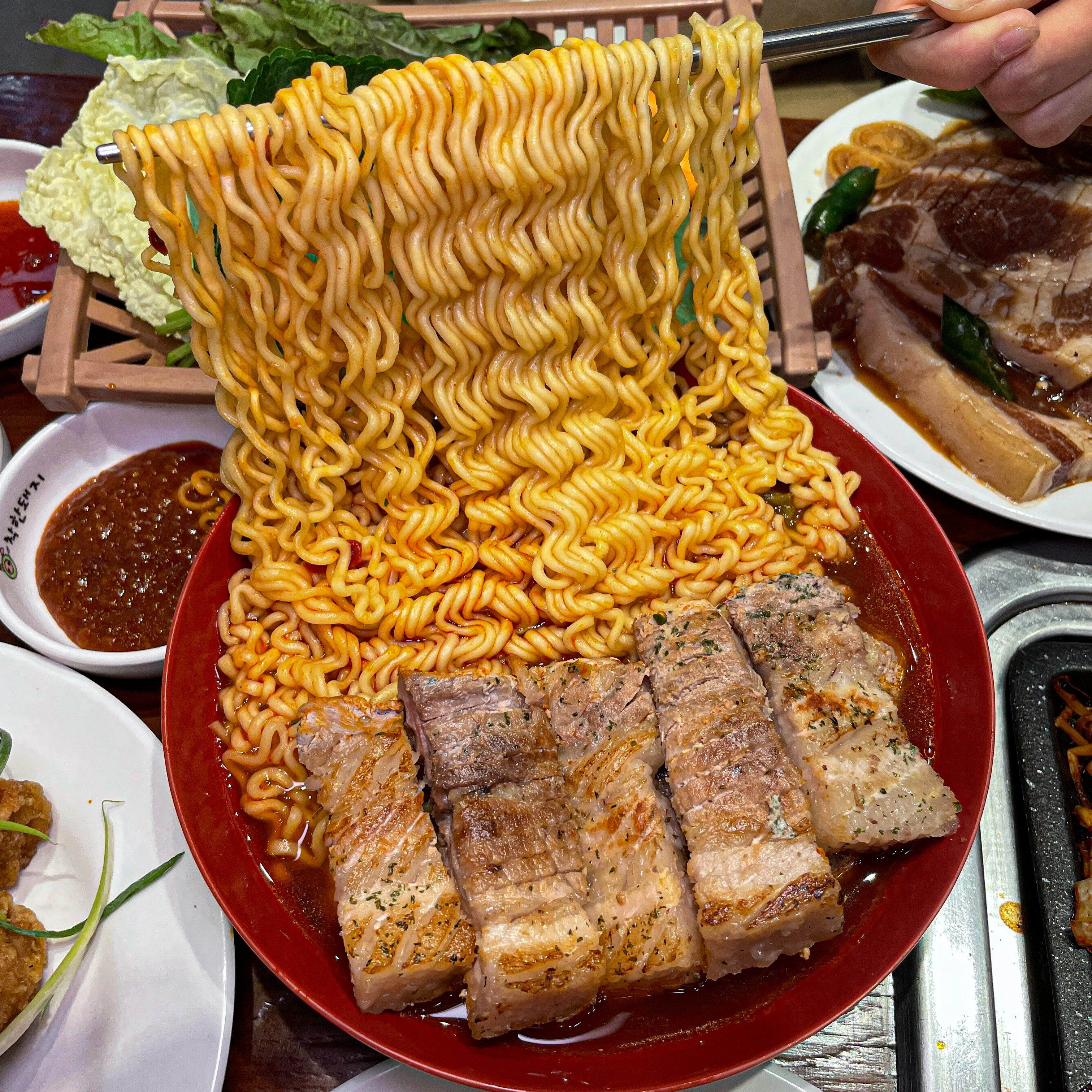 각종 고기들을 배부르고 맛있게 먹을 수 있는 곳이 있다닝~~😆 라면도 종류별로 있고 오리불고기도 완전 맛있었어요~🤤 이미 외국인들 사이에서는 인기 👍👍👍