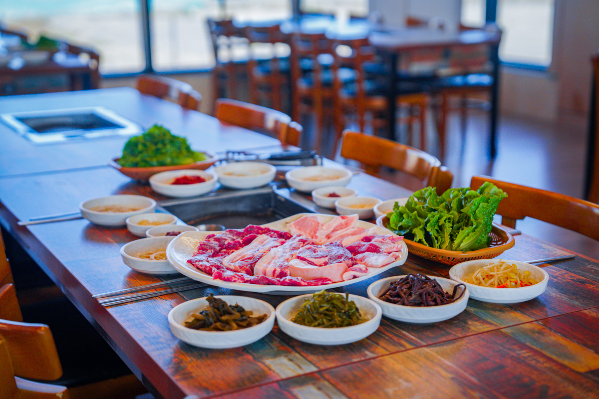 핑쿠팡쿠해비치 숙박하며 저녁에 들렸어요. 흑돼지 너무 맛있고 묵은지가 정말 예술이네요~!