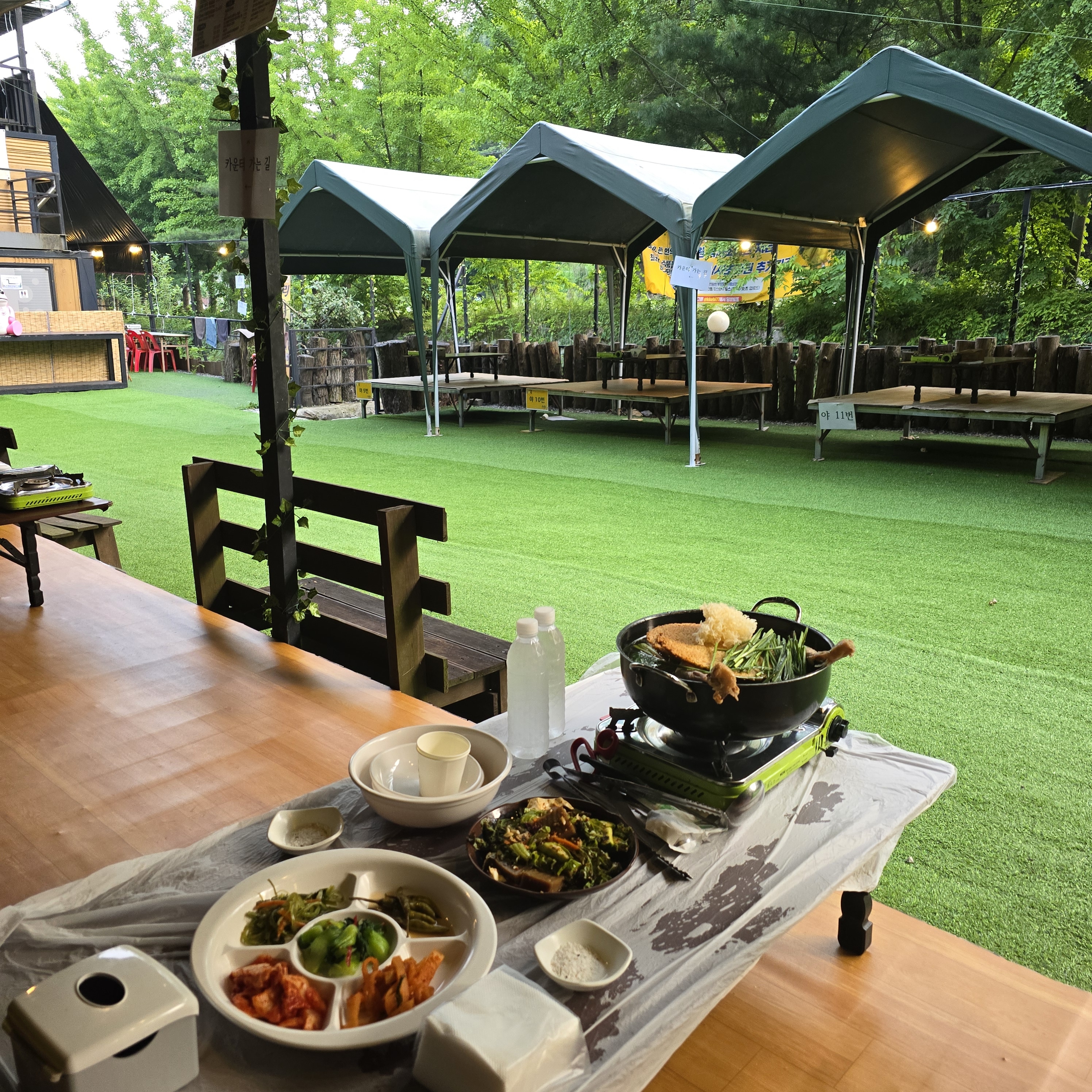뭉치망치3번째 방문이에요‘ 항상 여름에 갔다가 겨울에는 처음와봤는데 온돌룸 진짜 따듯하고 좋아용 ㅎㅎ 멍뭉이 뛰기도 좋구 반찬들이랑 백숙 감자전 도토리묵 다 넘 맛있게 잘먹구갑니당! 응대해주신 직원분도 넘 친절하셨어용👍