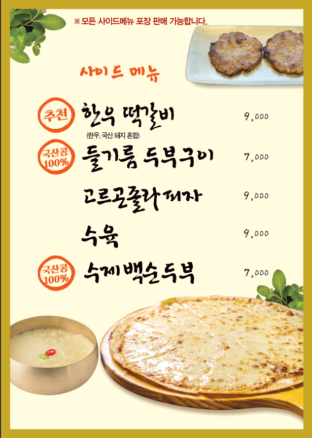 - 들기름 두부구이 8,000원