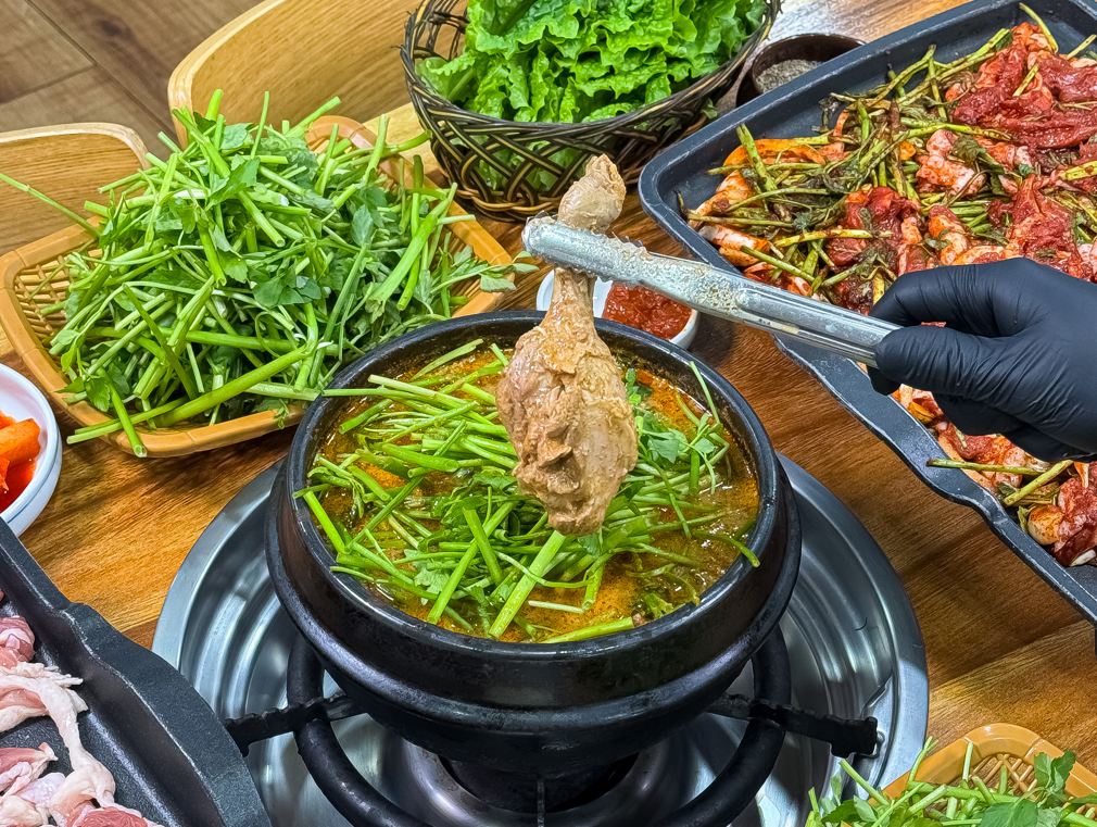 헤어워크룸얼마 전에 유튜브를 보다가 홍석천, 이원일 두 분이 광주 풍년오리탕에 방문해서 오리탕 드시는 영상을 봤거든요? 둘이 앉아서 오리탕을 얼마나 맛있게 드시는지.. 보고만 있어도 군침이 돌더라고요 “와.. 저거다!” 싶어 저도 어제 퇴근하자마자 아내랑 같이 다녀왔어요. 그곳이 바로 소문난 광주 신안동 맛집 풍년 오리탕입니다❤️ 가게에 도착하자마자 일단 마음에 쏙 들었던 건, 주차장이 넓어서 주차 스트레스가 없더라고요. 광주에서 맛집 가면 항상 주차가 고민인데, 여기서는 그런 걱정은 안 해도 된답니다️ 손님들이 많아 손님들 빠질 때마다 사진을 조심스레 찍었어요 ㅎ ㅎ매장도 넓고 쾌적해서 더 좋았고 티브이가 있어 야구를 보며 맛있게 먹었답니다 ㅋ ㅋ 저희는 오리탕 반 마리를 주문했어요, 잠깐 기다리는데 뭔가 구수한 냄새가 솔솔~ 퍼지더니 금세 한상이 차려졌습니다. 근데 미나리가 산처럼 쌓여있더라고요. 아 이게 바로 풍년오리탕의 시그니처구나 싶었어요! 비주얼부터가 이미 맛있어 보였어요 ㅋ ㅋ 국물부터 한 숟갈 떠먹어봤는데, 와.. 진짜 깊고 구수하면 서도 깔끔한 맛이었어요, 들깨가루가 들어가서 고소한데도 느끼하지 않고, 국물이 정말 끝내줬어요❤️ 오리고기는 말할 것도 없이 부드럽고 쫄깃해서 씹는 맛이 제대로였고, 잡내도 일절 없이 너무 담백하더라고요 무엇보다 미나리를 국물에 살짝 데쳐서 들깨가루 초장에 찍어 먹었는데, 아삭아삭하면서도 향긋한 게 너무 맛있더라고요. 왜 사람들이 미나리 미나리 하는지 단번에 이해했어요, 미나리 추가해서 엄청 먹었답니다 ㅋ ㅋ 밑반찬도 하나하나 다 맛있었어요, 깍두기, 콩자반, 무말랭이, 배추김치, 콩나물까지 정성스럽게 준비된 게 느껴지더라고요, 특히 무말랭이는 새콤달콤하고 꼬들꼬들해 국물이랑 정말 잘 어울렸어요, 김치도 딱 적당히 익어 있어서 오리탕에 밥 말아 김치 하나 얹어 먹으면 그야말로 꿀맛이에요❤️ 맛있다 보니 술이 빠질 수 없죠?? ㅎ ㅎ 둘이서 소주를 4병이나 마셨네요. 아내랑 “너무 맛있다” 를 연발하면서 국물까지 싹 비웠어요 ㅋ ㅋ ㅋ 남은 국물에 공깃밥을 말아먹는 마지막 한입까지도 정말 행복했습니다. 식사를 마치고 나니 왜 홍석천, 이원일 유튜브에서 두 분이 그렇게 감탄했는지 알겠더라고요. 진한 국물, 푸짐한 미나리, 부드러운 고기 하나도 빠질 게 없었어요 저희 부부도 먹으면서 다음엔 부모님도 모시고 오자라고 얘기했답니다 요즘같이 더운 날씨에도 먹고 나면 힘이 나는 기분이에요. 정말 기분...