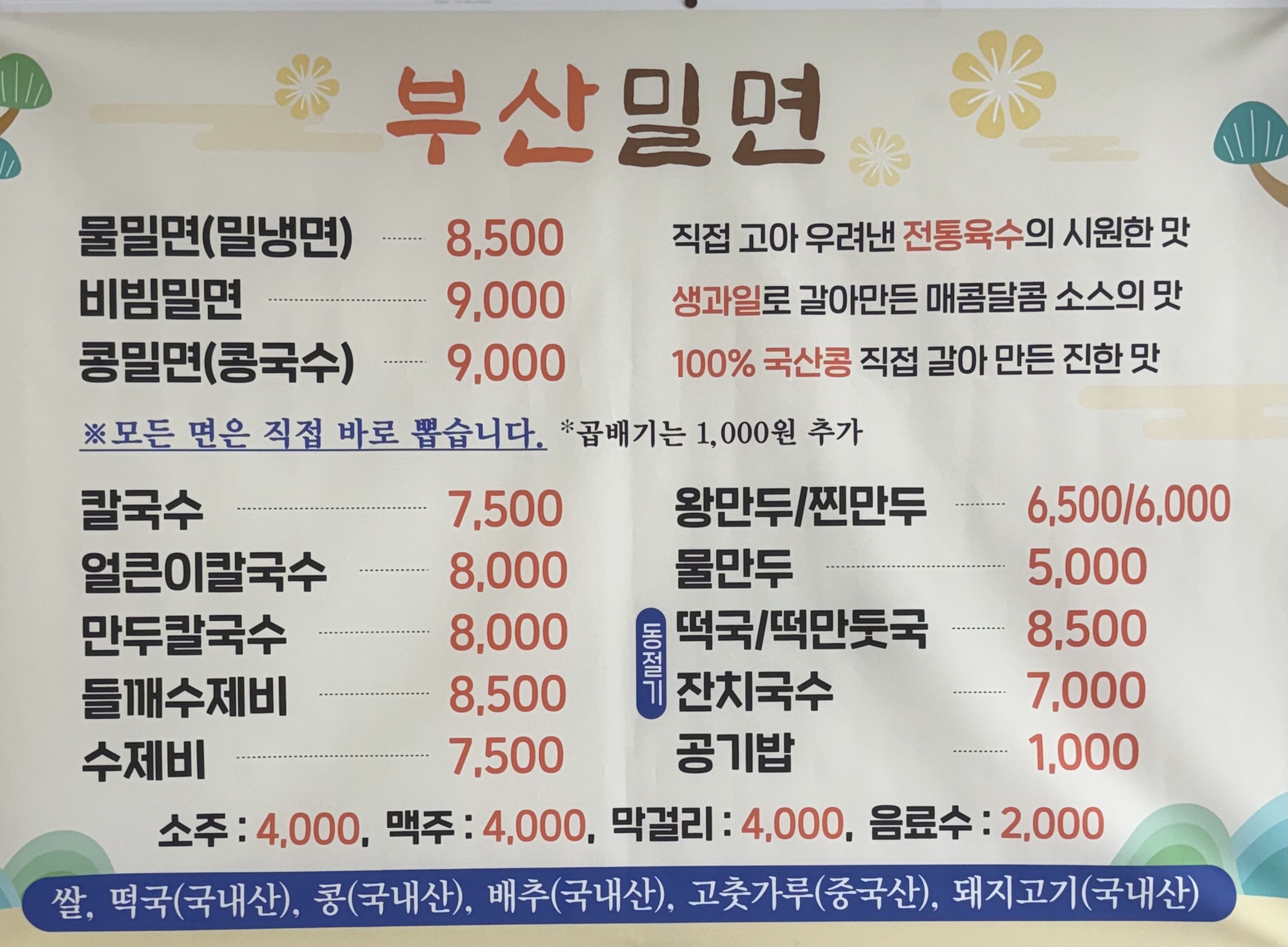 - 콩국물(여름 한정) 16,000원