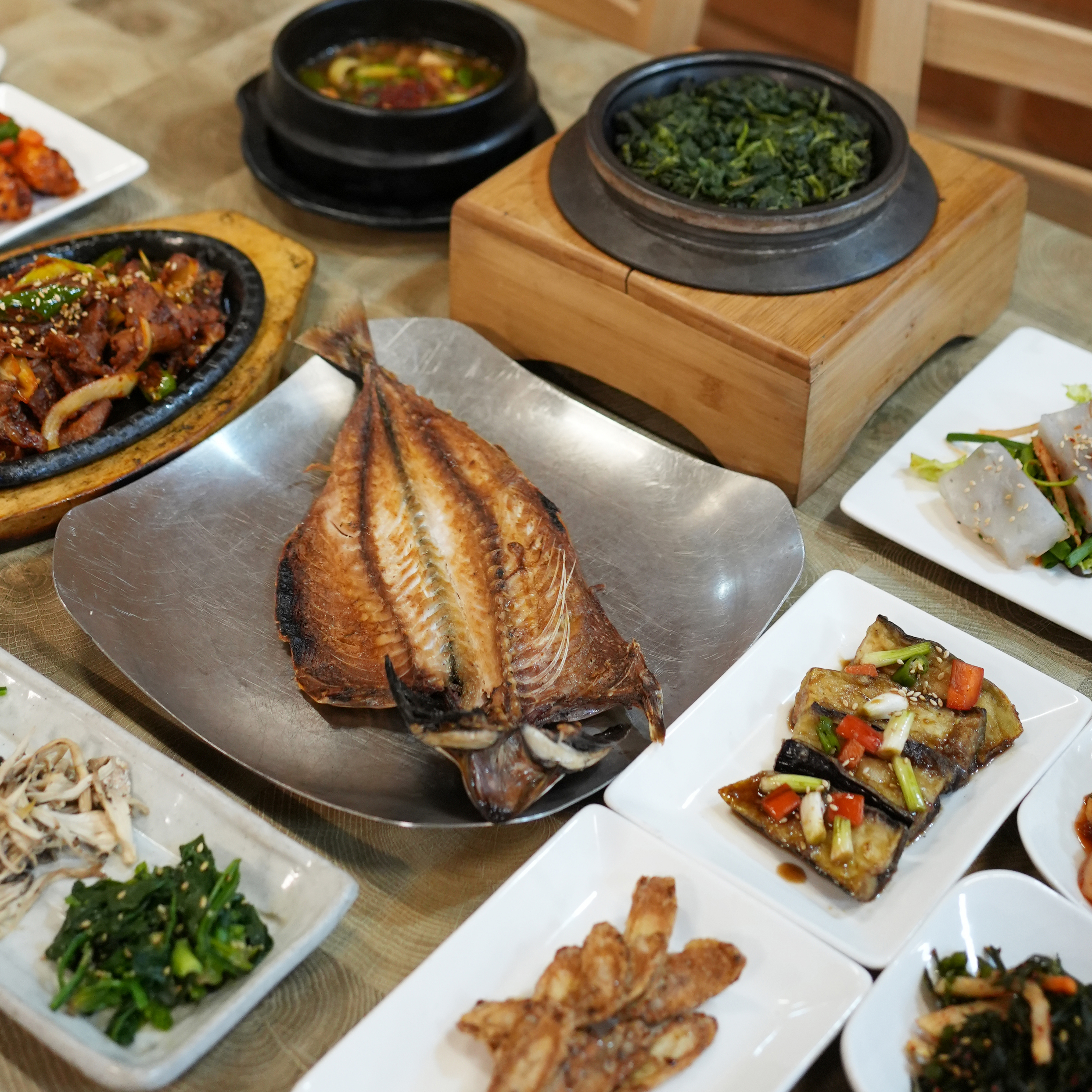 콩고물7한상 차림으로 곤드레솥밥, 고등어구이, 제육볶음 조합 완전 만족! 곤드레솥밥은 향도 좋고 고슬고슬해서 된장찌개랑 비벼 먹기 최고였어요. 고등어구이는 겉바속촉에 비린내 없이 담백해서 밥도둑 👍 제육볶음은 불향 나면서 적당히 매콤해서 계속 손이 갔어요. 전체적으로 깔끔하고 든든한 한 끼로 재방문 의사 있음!