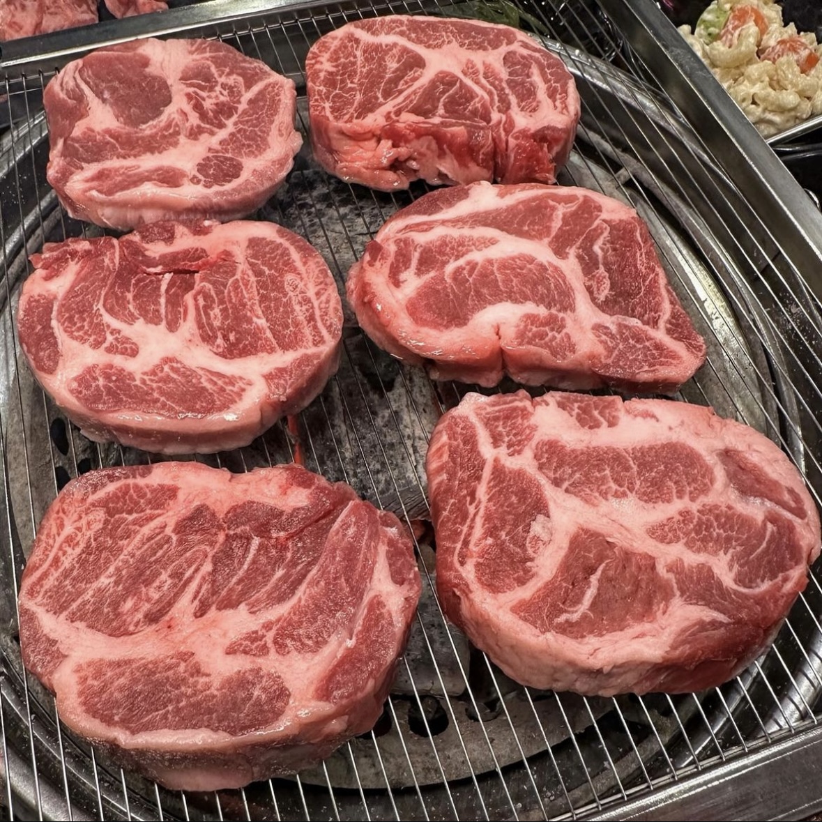 달콤한도로시이곳의 가장 큰 특징은 숯불입니다. 가스불과는 달리 숯불은 고기를 굽는 동안 자연스럽게 훈연 향이 더해집니다. 실제로 고기를 뒤집을 때 올라오는 향이 확연히 다릅니다. 숯불은 기름을 빠르게 떨어뜨려 기름기가 과하게 남지 않습니다. 그래서 전체적으로 담백한 맛이 살아 있습니다. 기름이 과하지 않아 고기를 여러 점 먹어도 부담이 적은 편입니다. 꽃살치살은 마블링이 적당히 퍼져 있어 씹는 맛이 살아 있으면서도 질기지 않습니다. 첫 식감은 부드럽고, 씹을수록 고소한 육즙이 느껴집니다. 지나치게 기름지지 않아 담백하게 즐길 수 있는 부위입니다. 항정살은 지방과 살코기의 비율이 좋아 식감이 독특합니다. 겉은 살짝 쫀득하고 속은 부드럽게 씹히는 느낌이 인상적입니다.