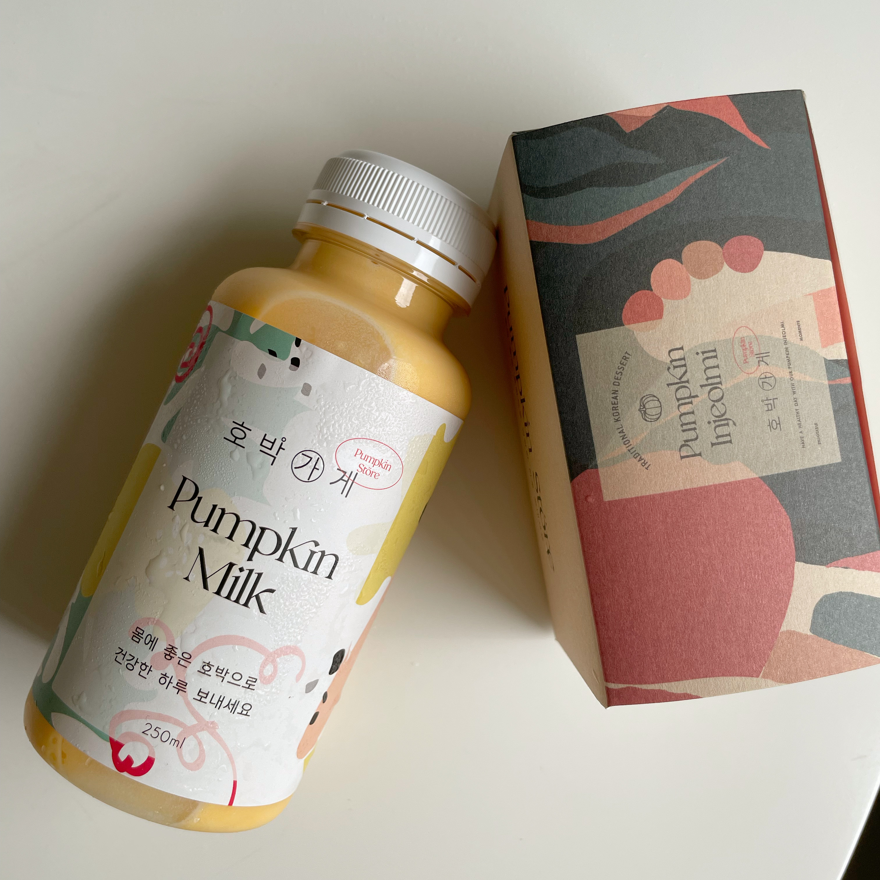 김옥돌옥돌호박이 이렇게 맛있는 재료였다는 점을 알게됨 호박우유 이거 약간 바나나맛우유 느낌인데 더 맛있고 속이 편했어요 부모님 드시라고 떡 포장했는데 기대가 됩니다