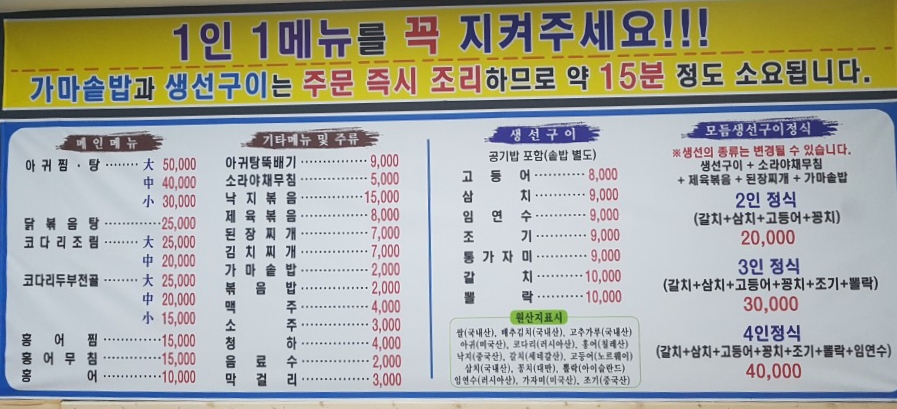 - 아구찜,탕(대) 60,000원