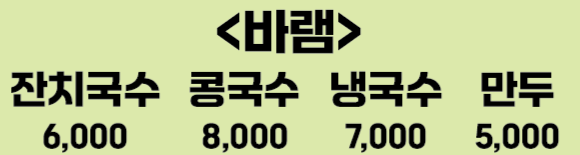 - 콩국수 8,000원