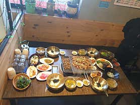 리얼제이드곡성장미축제 때 곡성 특산물을 파는 곳에서 멜론과 토란이 유명하다는 것을 알게되었었는데 곡성 기차마을 맛집 메란명가에서 지역 특산물들을 활용해서 만든 고기집이 있다고해서 가봤답니다. 곡성 롯데리아ㆍ이디야커피 맞은 편이고 저녁 시간에 방문했었는데 환하게 비춰지는 소캐릭터 입간판이 보여서 쉽게 찾을 수 있어요. 출입문 쪽에 곡성 기차마을 맛집 메란 명가 메뉴들 사진이 있어서 음식 주문 시에 도움이 될 것 같아요. 식당 맞은편이 전용 주차장이라 넓고 편하게 주차할 수 있어서 좋았어요. 홀도 넓었지만 분리되어 있는 공간들이 있어서 단체나 모임 단위로 와서 먹기에도 충분하더라고요. 곡성 고기집인데 쾌적하면서도 가족끼리 외식하기도 좋은 깔끔한 분위기였어요. 곡성 맛집답게 메뉴 이름이 특이했는데 깨비정식이 무척 궁금하더라고요. 그래서 흑돼지깨비정식 2인분과 갈비깨비정식 2인분 이렇게 시켰어요. 점심 메뉴로 왕갈비탕과 비빔밥이 있고 다양한 보양 삼계탕까지 있어서 든든하게 식사도 가능하겠더라고요. 특히나 안내문에는 당일 도축된 소를 사용한다는 내용도 적혀 있어서 신선함까지 신경쓰시는 것 같아요. 반찬이 다양하게 나와서 놀랐어요. 솔직히 곡성 고기집에서는 대부분 채소쌈과 간단하게 곁들어 먹는 김치 정도 나오는데 잡채와 메추리알 장조림까지 녹색 전은 상추전인데 상추도 직접 사장님께서 키워서 내놓으신다고 해요. 불판 한 쪽에 있던 갈색 나물이 처음엔 고사리인 줄 알았는데 곡성 토란이라고 하더라고요. 부족한 반찬들은 셀프 코너에서 직접 드실 만큼 가져오면 되고 고기와 함께 곁들여 먹으면 별미인 토란대는 1만원 더 내고 추가 가능해요. 사장님께서 석쇠구이 초벌해서 가져오셔서 불판에 얹어 주셨는데 보기만해도 먹음직스럽지 않나요!? 곡성 갈비 맛집과 다른 점이 있다면 멜론을 베이스로 만든 특제소스를 이용해서 음식들을 만들다고 해요. 그래서 그런지 갈비가 은근하게 달짝지근 하면서도 육질이 진짜 부드러워서 떡갈비 먹는 식감이라 어린 아이들도 좋아할 것 같아요. 상추에 고기와 쫄깃하고 꼬들한 토란대 그리고 어린메론장아찌까지 넣어서 한 입에 싸서 먹으면 감칠맛 폭발 지금은 겨울이라 멜론이 나오는 시기가 아니라서 어린멜론으로 만든 장아찌가 나오는데 여름철 곡성 메론이 나오면 과육 그대로 맛보도록 내주신다고 해요. 그때 또 와서 달콤한 메론 먹고 싶어요! 곡성 고기집에서 나오는 된장찌개 완전 보글보글 팔팔 끓여서 주셨는데...
