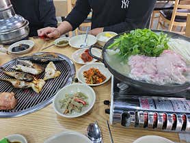 엄오나속초 생선구이 맛집 등대 중앙시장 근처 속초 아침식사 추천 속초 생선구이 맛집은 진짜 여기에요! 오전 7시부터 여는 곳이라 속초 아침식사로 숯불생선구이 or 뜨끈한 지리탕으로 속 풀기 좋은데 진짜 숯불에 구운 생선 맛은 안먹어보셨으면 말을 마세요~! 주소 강원특별자치도 속초시 청초호반로 320 1층 갯배가을동화생선구이 전화번호 033-636-0460 영업시간 07:00-21:00 1. 주차 및 위치 주차는 가게 앞에도 할 수 있긴하지만, 바로 옆에 조광주차장, 금호주차장에 주차하면 도보 3분거리에 주차할 수 있고 주차비 1시간을 지원해주셔서 주차비 걱정없이 편하게 밥 먹을 수 있었어요! 위치는 갯배에서 걸어서 3분거리? 솔직히 뛰면 1분이면 가는 곳이라 갯배구경도 하고, 속초 중앙시장 초입부분에 위치하고 있어서, 밥먹고 시장 구경 가기도 좋은 곳이에요. 2. 메뉴판 실내는 깔끔하고 넓어서 단체도 가능! 여기는 생선구이전문점이라 생선이 종류가 많아요~ 저희는 생선구이에 생대구탕을 주문했어요! 그리고 여기 젓갈도 따로 판매하는 곳인데 감칠맛이 대박이라서! 같이 간 언니가 살까말까 진심 고민하다가 구매 안했는데 여깈ㅋㅋ계속 생각나서 다시 가야겠다더라고요~! 3. 밑반찬 속초 중앙시장 맛집으로도 바로 앞이라 딱인데, 요래요래 맛있는 밑반찬이 먼저 나왔지요~ 제가 엄마랑 살때는 이런 밑반찬의 소중함이 1도 없었는데, 결혼하고 제가 또 살림을 하다보니 이런 반찬 만들기가 왜이렇게 힘든지~~ 이런데 오면 반찬을 더 먹게 되는 것 같아요. 게다가 여기 따로 판매하는 이 젓갈류는 진짜 따로 판매하는걸 사고 싶을 정도로 감칠맛도 폭발하는 맛이라 이거 입맛없을때 밥 듬뿍 말아서 먹으면 대박이겠다 싶었어요. 밥 다 먹고 누룽밥에다가 젓갈먹으면 딱! 게다가 이 누룽밥이 나오는 솥밥이! 꽤나 많은 식당에서는 추가금이 붙는데, 여기는 그냥 기본으로 솥밥이 나와서 더 맛있게 고소하게 먹을 수 있었어요! 속초 생선구이 맛집으로 솥밥과 먹으면 아침에 진짜 대접 받는 기분이라 증맬루 좋더라고요~ 게다가 요래요래 순대도 나오는데, 이 순대가 또 기본으로 나오는 것 치고 속이 진짜 푸짐해서 계속 집어먹게 되는데요. 이 청어알젓갈과 먹으면 간도 딱 맞고 오독오독한 알의 식감과도 찰떡인 메뉴였어요. 4. 속초 아침식사 게다가 지리탕 놓칠 수 없죠! 특히나 요즘 같은 겨울에는 뜨끈한 국물이 생각나는데, 아침에 뜨끈하고 담백한 국물의 지리탕이라니 술을 안마시는데 해장의 맛이 이런거겠구나 싶어요. 미나리랑 무우 파등...
