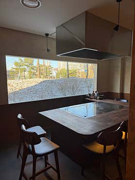 오들레2025. 10. 07 별로 없는 작고 소중한 친구들 만나러 나갔어요 편하게 추석 연휴 보내다가 오랜만의 외출이라니 꽤나 신나는걸? 더테판 041-552-7892 충남 천안시 동남구 청수10길 31 영업시간 17:00 ~ 22:00 (예약 필수) 삼룡동에 위치한 더 테판입니다. 이쪽에 법원이 있잖아요? 그 앞쪽일 줄 알았는데 원룸촌 쪽에 있더라고요 이런데 식당이 있어? 싶은 곳에 위치하고 있어요 주차장이 있긴 한데 협소하고 근처 골목에 적당히 대시면 됩니다. 영업은 5시부터이고 우리는 5시 예약을 하고 갔답니다. 너무 일찍 가서 문 앞에서 약간 대기 시간이 되어 들어갔어요 오픈형 주방으로 코스별로 나오는 음식 준비하는 곳이 보입니다. 캐치테이블로 예약할 때 메뉴를 미리 주문하게 되어 있더라고요 네이버 업소 제공 이미지에 메뉴가 있었는데 그때보다 가격이 좀 인상되었더라고요 저희가 주문한 건 1인당 12만 5천 원짜리 쉐프코스였습니다. 일반 소주는 없고 일품진로나 화요 중 선택하실 수 있어요 맥주는 국내산, 수입산 다양하고 와인도 여러 가지가 있었어요 (콜키지 병당 5,000원으로 저렴한 편) 가게 내부는 많이 큰 편은 아니고 대형 철판이 두 곳에 분리되어 있었어요 철판 하나당 6~7명 정도 앉을 수 있고 제가 간 예약시간에는 우리 셋, 다른 팀 두 명 해서 총 다섯 명이었어요 여긴 위에서도 말했지만 반드시 예약을 해야 하는데 이유가 쉐프님이 조리하시는 저 철판이 엄청 두꺼운데 달궈지는데 만 30분이 넘게 걸린대요 (저거 반만 한 철판이 하나데 800만 원이라고 ㄷㄷ) 예약 인원수 대로 미리 셋팅이 되어있었어요 큰 접시 위에 음식을 올려주는 시스템 큰 접시가 철판에 약간 걸쳐져 있어 음식이 식지 않도록 한다고 하더라고요 대신 철판에 가까운 부분은 뜨거울 수 있으니 주의 안쪽에 조리에 필요한 각종 소스들이 보여요 잠깐 구경 하고 있자면 시간이 되어 순차적으로 코스요리가 나오기 시작해요 제일 처음은 버섯죽 참기름이 뿌려져 있어 꼬수워요 같이 소스도 내주시는데 총 네 가지 소스거든요 순서대로 생가소스, 폰즈, 씨겨자, 고추냉이 생강 소스는 채소 폰즈는 생선 씨겨자와 와사비는 고기와 먹으면 잘 어울린대요 유자 드레싱이 뿌려져 있는 샐러드 소스가 꽤나 달달한 편 ㅎ 개인적으로 소스가 강해서 좀 아쉬웠어요 하지만 채소는 다 싱싱하고 좋았답니다. 우선 철판을 세척하고 기름칠을 하면서 한번 까불어 주시고요 (ㅋㅋㅋ) 채소구이 코스가 나옵니다. 꽤나 다양한 채소가 나오는 편 가지, 새송이, 양파, 마, 애호박 까지 총...