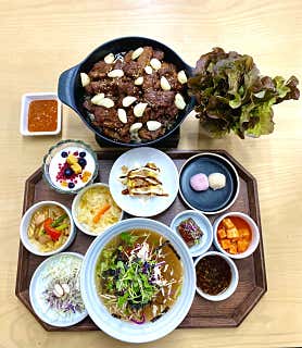 뽀리맘다담석갈비 ㆍ단양구경시장 맛집ㆍ한정식ㆍ주차 단양 여행을 숙소만 잡고 무계획으로 갔어요. 저녁 먹을 시간이 되어서 아이와 먹을 수 있는 근처 식당 검색 후 갔는데 어머나, 진짜 맛집을 만나다니! 정갈하게 구성된 석갈비 한정식이 1인으로 깔끔하게 나오고 맛도 좋아서 행복한 저녁시간을 보냈어요. 단양구경시장 맛집 다담석갈비 소개해 드릴게요. 주차정보도 함께요! 단양구경시장은 다양한 먹거리로 유명한 곳인데 저흰 식사할 곳을 찾았기에 구경시장 앞에 있는 다담을 선택했어요. 위치, 영업시간, 주차 단양구경시장과 가까워 밥 먹고 구경시장 둘러보기 좋아요. 월요일 휴무 화, 수, 목, 금, 토, 일 10:30 ~ 20:30 브레이크 타임 15:00 ~ 17:00 라스트 오더 19:30 다담석갈비 시장 입구에 위치해있기에 식당 앞에 주차하긴 힘들어요. 구경시장 주차장이나 다누리 아쿠아리움 주차장을 이용하면 돼요. 저흰 다누리 아쿠아리움 주차장을 이용했고 이용요금도 착했어요. 가족모임으로 좋은 단양구경시장 맛집 다담석갈비는 깔끔한 인테리어로 단체석과 룸이 준비되어 있어요. 단양 맛집 몇 군데 다니다 보니 깔끔한 식당이 참 반가웠어요. 아이와 함께 방문할 식당을 찾으신다면 다담석갈비 추천드리고 싶어요. 메뉴 구성을 보시면 더욱 맘에 드실 거예요! 깔끔한 1인 석갈비 한정식 저흰 무계획 여행이었기에 다담석갈비가 1인 한상으로 나오는 한정식 식당인지는 모르고 방문했어요. 여행엔 고기로 에너지를 채워야 하기에 아이들도 먹을 수 있는 석갈비 메뉴를 선택했는데 기대 이상으로 맘에 들었어요. 막국수부터 후식까지 나오니 정말 맛있는 코스요리를 즐길 수 있어요. 단양구경시장 맛집 다담석갈비의 메인메뉴는 다담한상이에요. 막국수, 육회, 감자만두도 메뉴에 있지만 무조건 다담한상 드시는 것을 추천드리고 2인부터 주문이 가능해요. 다담한상은 석갈비가 무쇠팬 위에 나오는데 석갈비 밑에 눌린 밥이 깔려 나와요. 석갈비의 달짝지근한 양념이 스며든 눌린 밥이라 정말 맛있고 구운 통마늘이 듬뿍 올려져 있어서 밥과 석갈비와 구운 마늘을 한입에 먹으면 맛 궁합 진리예요! 여행 첫날의 저녁이라 에너지 바닥이었는데 석갈비 한상으로 단양구경시장 둘러볼 수 있는 에너지가 채워지더라고요. 다담한상에 막국수도 함께 구성되어 있어요. 전 물 막국수를 주문했는데 양념장이 들어간 물 막국수였어요. 달달한 석갈비와 함께 먹으니 행복한 맛, 모두 아시죠? 반찬들이 석갈비와 곁들이면 좋은 반찬들이라 더욱 맛있게 먹을 수 있었던...